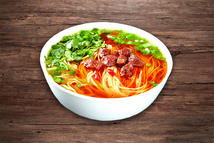 3.加入適量牛湯,根據自己需求(面上再加不同澆頭)、加入醬,撒蔥花或加香菜點綴即可。